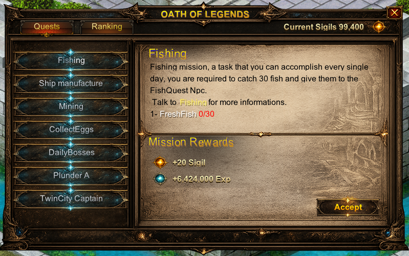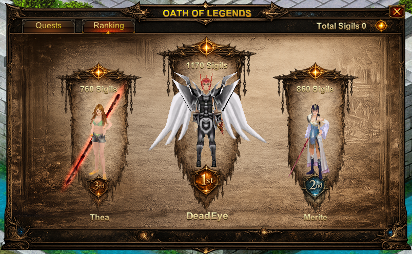 Oath of Legends is a competitive, quest-based progression system designed to reward active and consistent players. By completing Daily and Special Quests, players earn Legendary Sigils, a unique currency used for rankings and powerful in-game rewards.