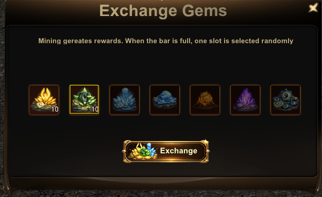 The Exchange Gems system allows players to process mining rewards using the Mine Store Exchange Window.
